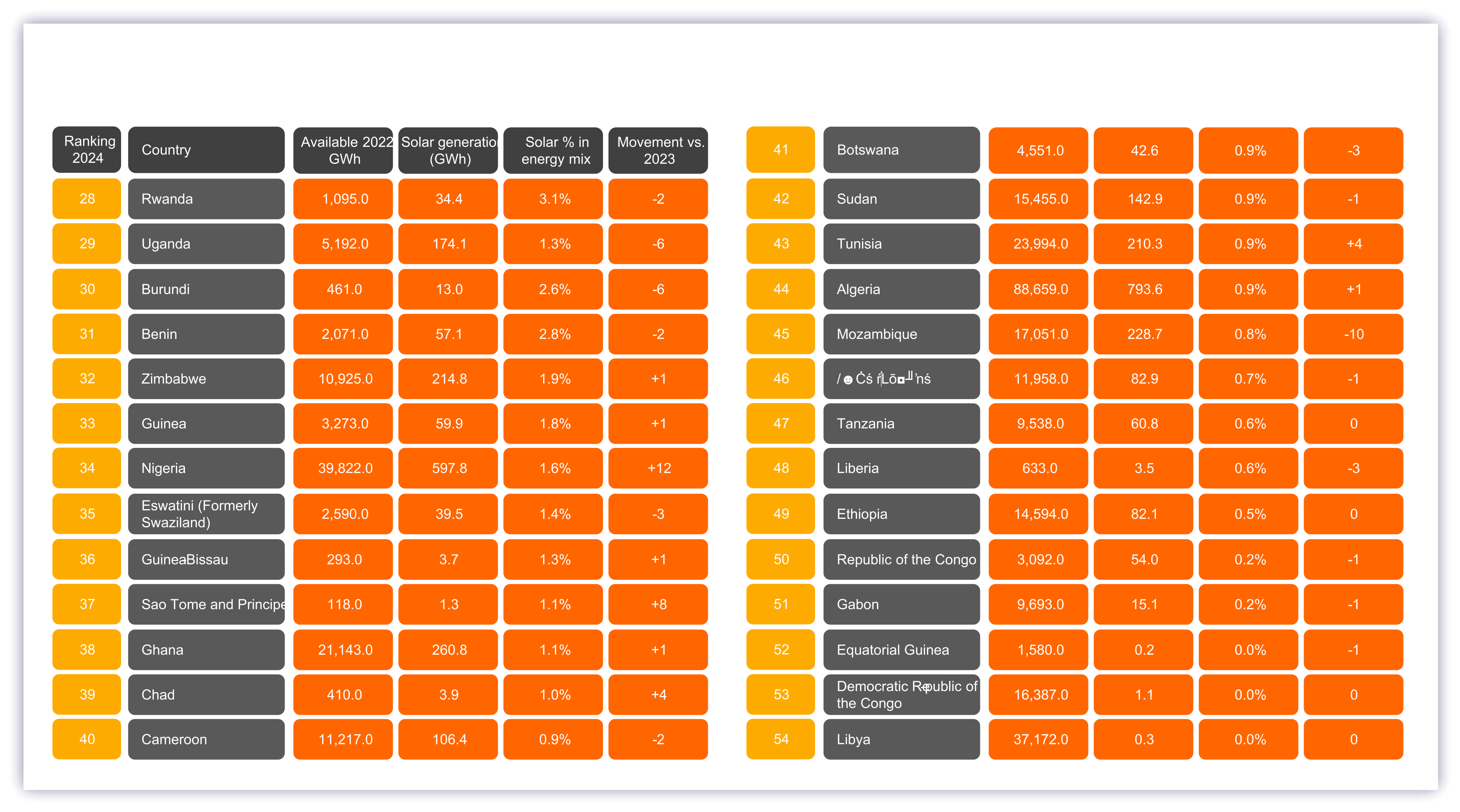 Angola, Ivory Coast, and Gambia all made the top 10 for the first time, marking a clear expansion beyond the region’s traditional solar powerhouses.