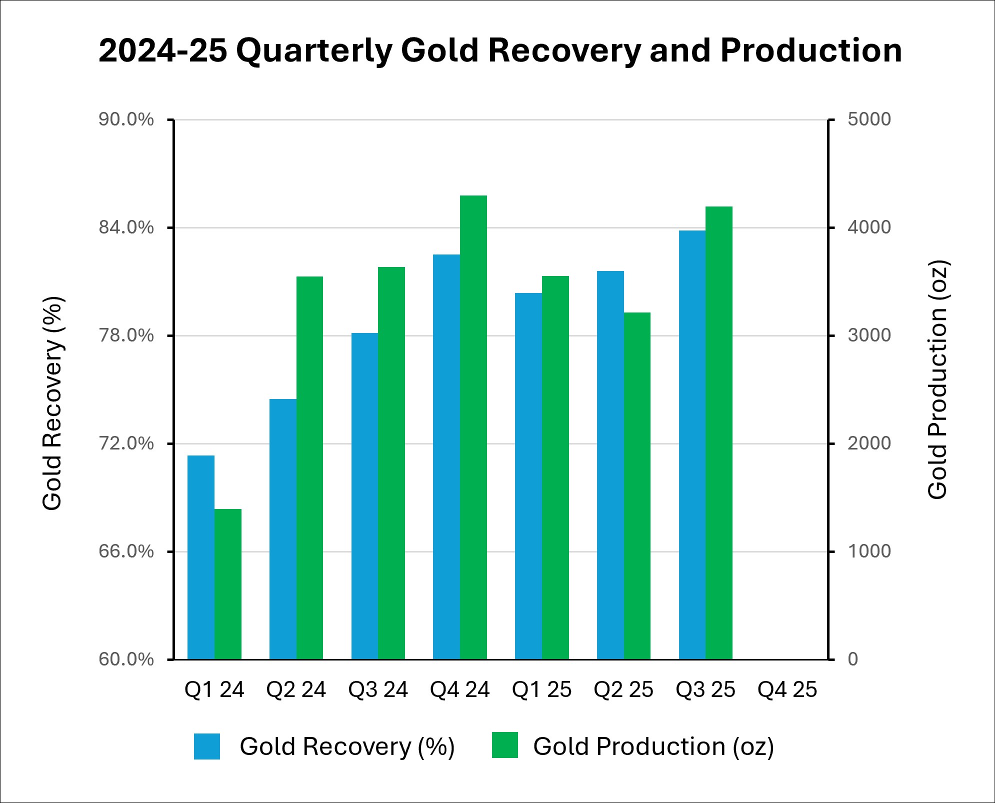 Figure 1. Tuvatu Quarterly Gold Recovery and Production, 2024-2025.