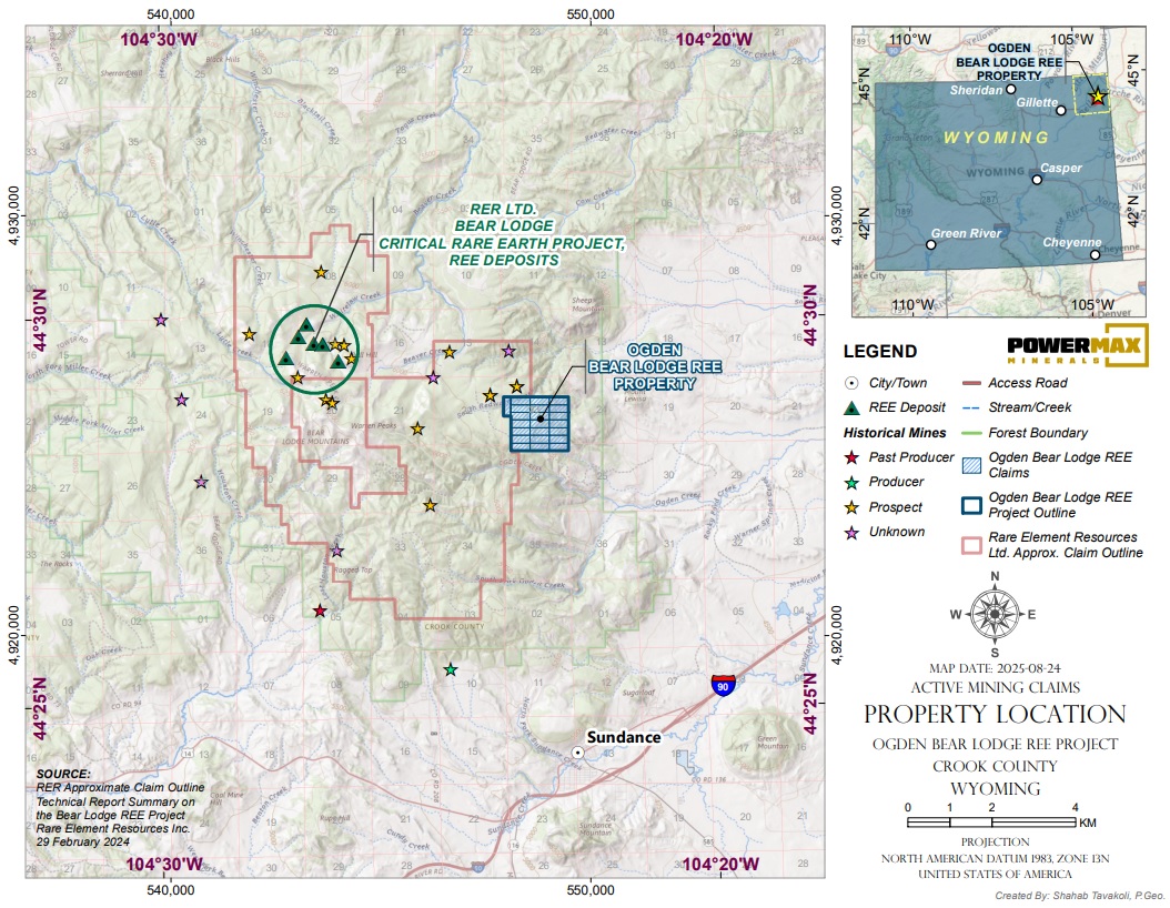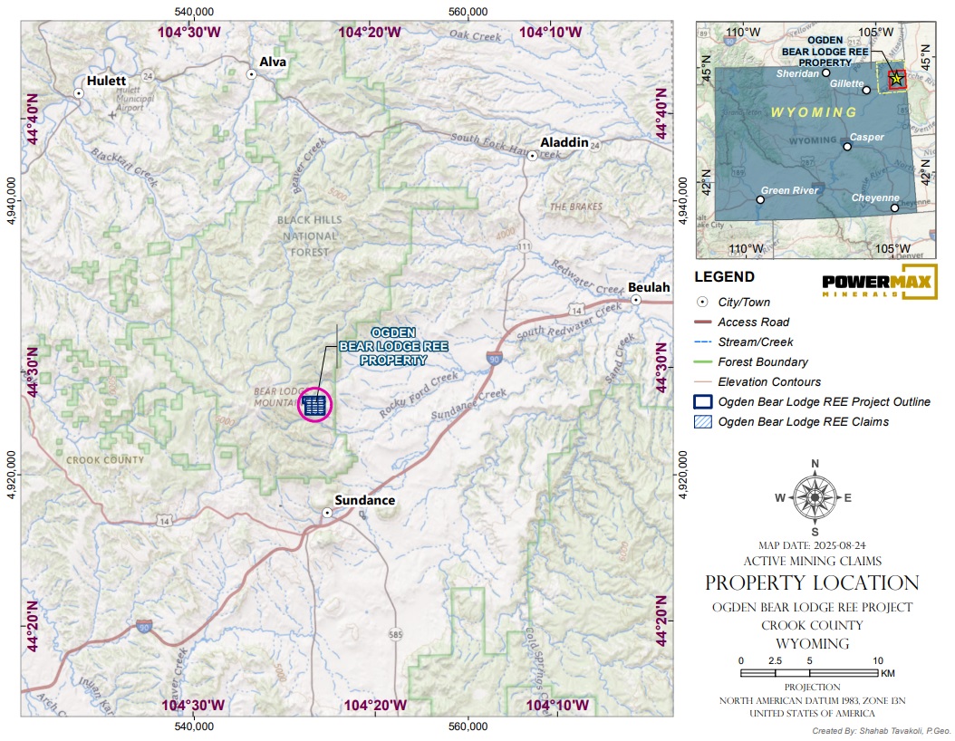 Vancouver, British Columbia–(Newsfile Corp. – October 8, 2025) – Powermax Minerals Inc. (CSE: PMAX) (“Powermax” or the “Company“) is pleased to announce today that it has completed the acquisition of a 100% interest in the Ogden Bear Lodge REE Project in Crook County, Wyoming (the “Property“) from 1357508 BC LTD. (“1357508“) via the purchase from 1357508 of all of the shares of its formerly wholly-owned subsidiary, Goldenears Exploration Corp., pursuant to the terms of a share purchase agreement dated September 23, 2025 (“Purchase Agreement“), as previously announced in the press release dated September 29, 2025. The consideration paid by the Company under the Purchase Agreement consists of 250,000 common shares of Powermax.
