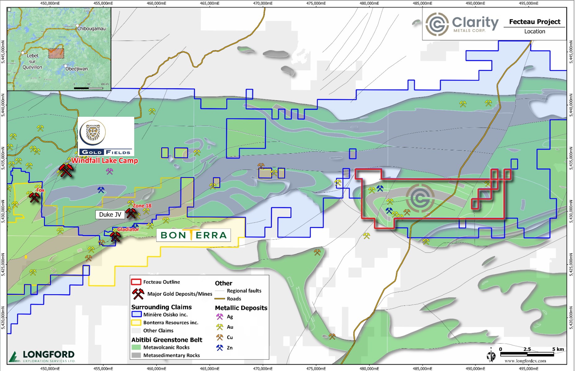 Figure 1: Location of Fecteau Gold Project showing nearby projects.