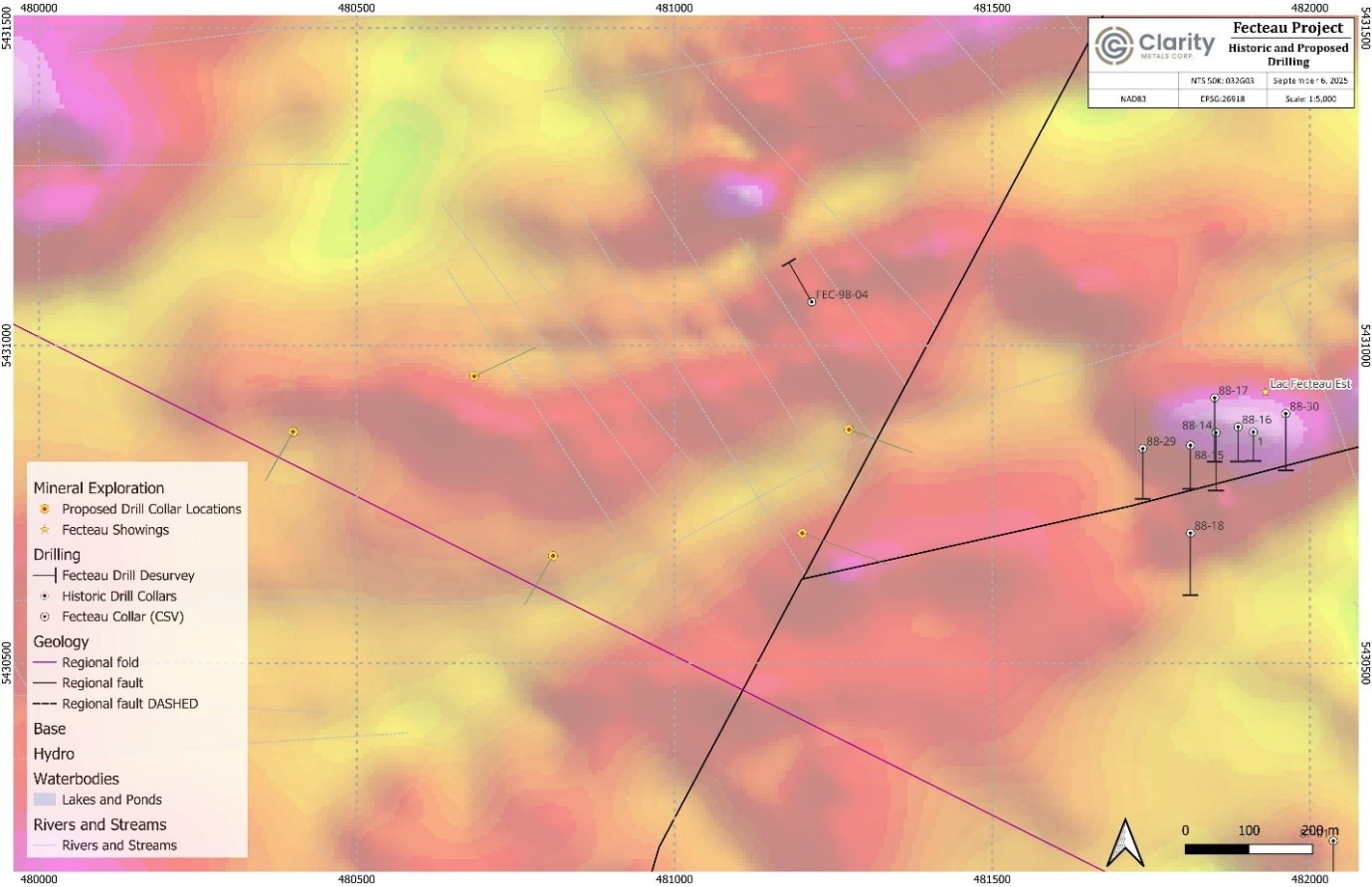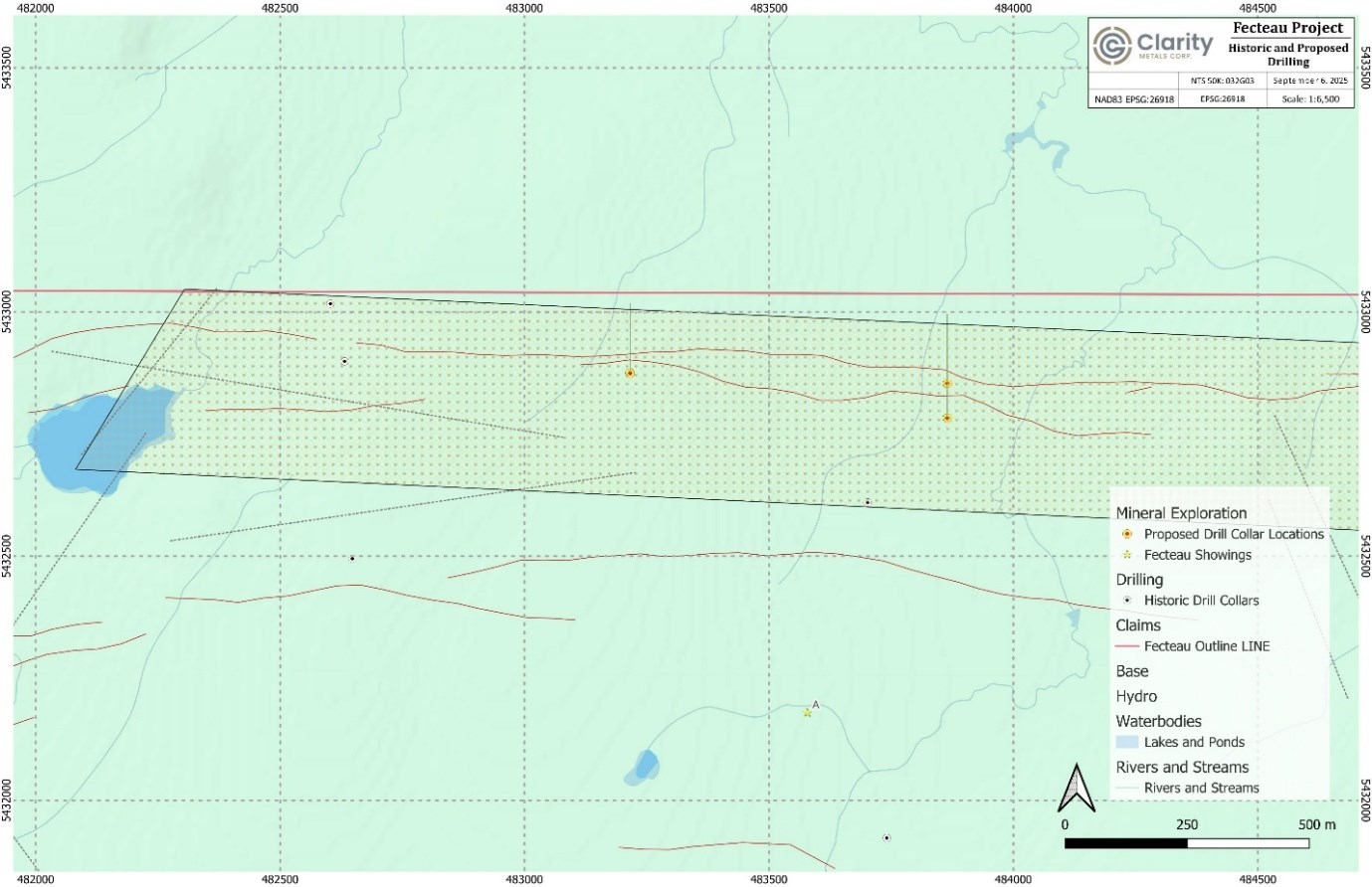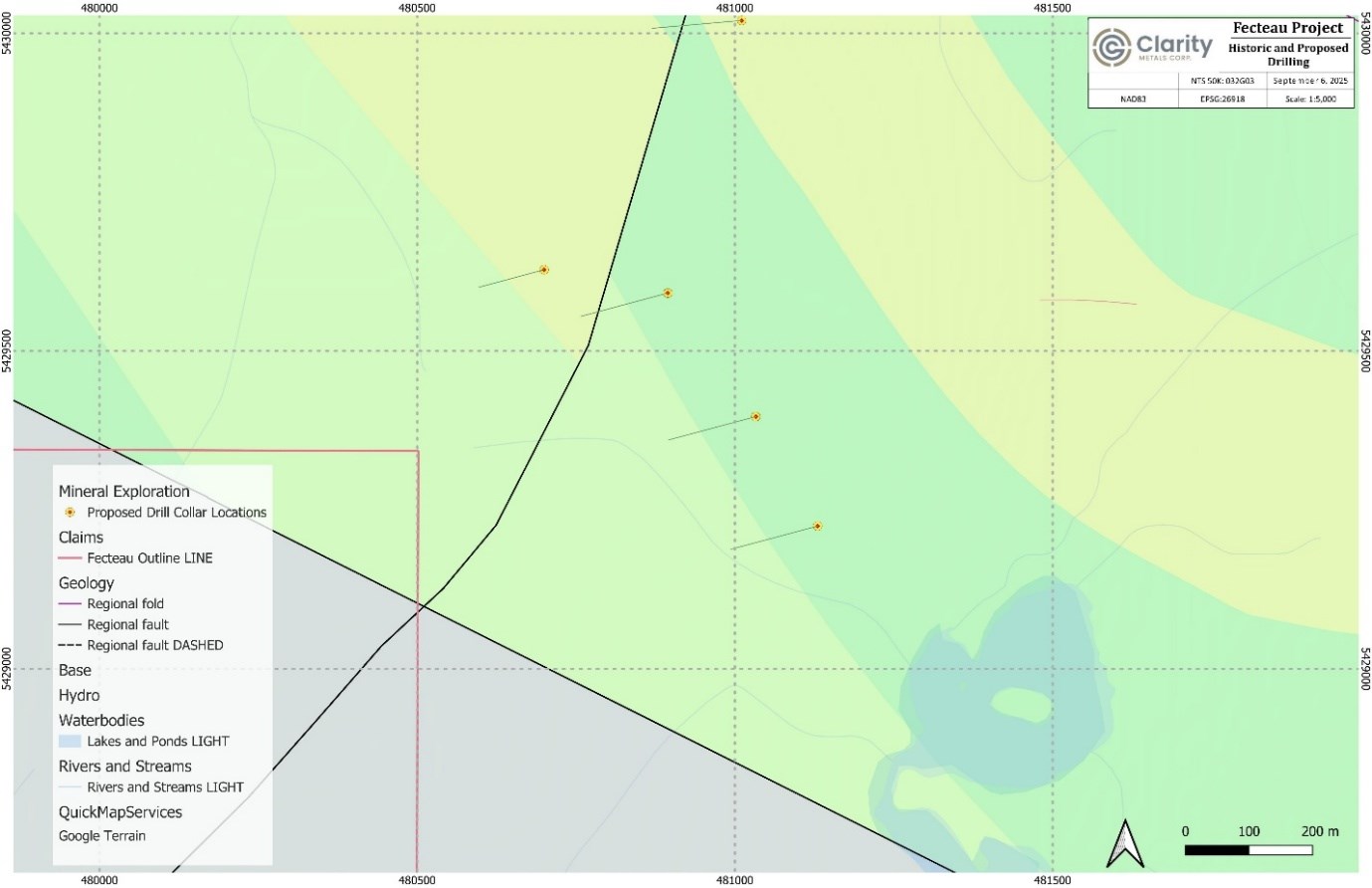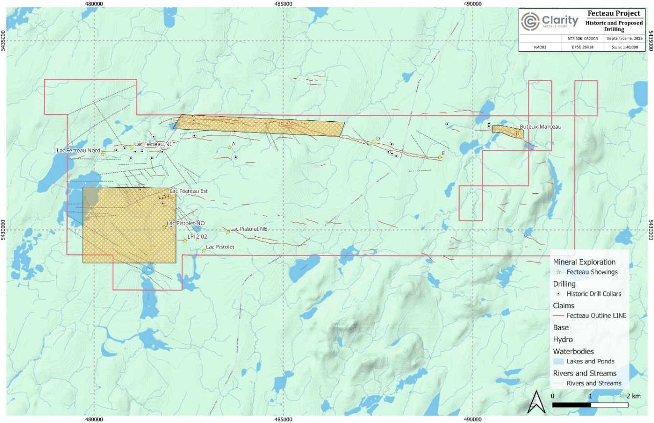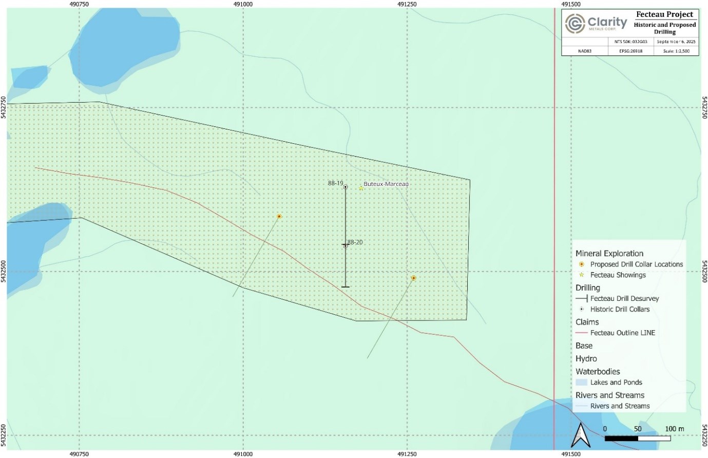 Vancouver, British Columbia–(Newsfile Corp. – October 16, 2025) – Clarity Metals Corp. (CSE: CMET) (OTC Pink: CLGCF) (FSE: 27G0) (“Clarity” or the “Company“) is pleased to confirm receipt of all permits required to conduct drilling on its 100% owned Fecteau Gold Project located in the Province of Quebec (the “Fecteau Property” or “Property“). The Company is committed to further investigating the great potential in the Abitibi.