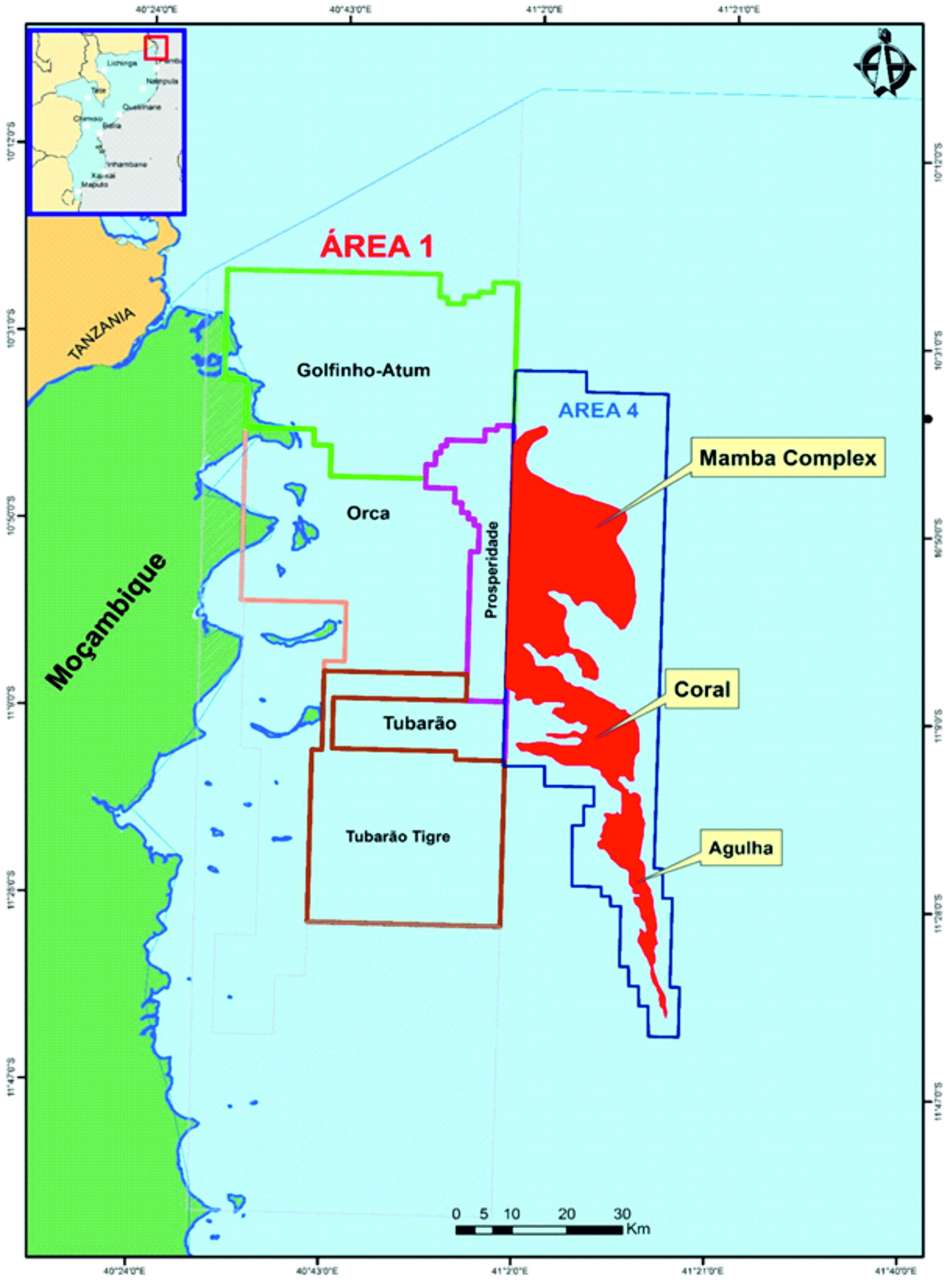 Fig. 1 – Location of the main gas fields in the Rovuma Basin