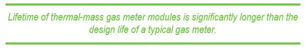 Recent developments have brought the cost of thermal-mass technology to the point where it has emerged as a very attractive solution for gas metering applications. Long-term field reliability studies indicate that the lifetime of thermal-mass gas meter modules is significantly longer than the design life of a typical gas meter.